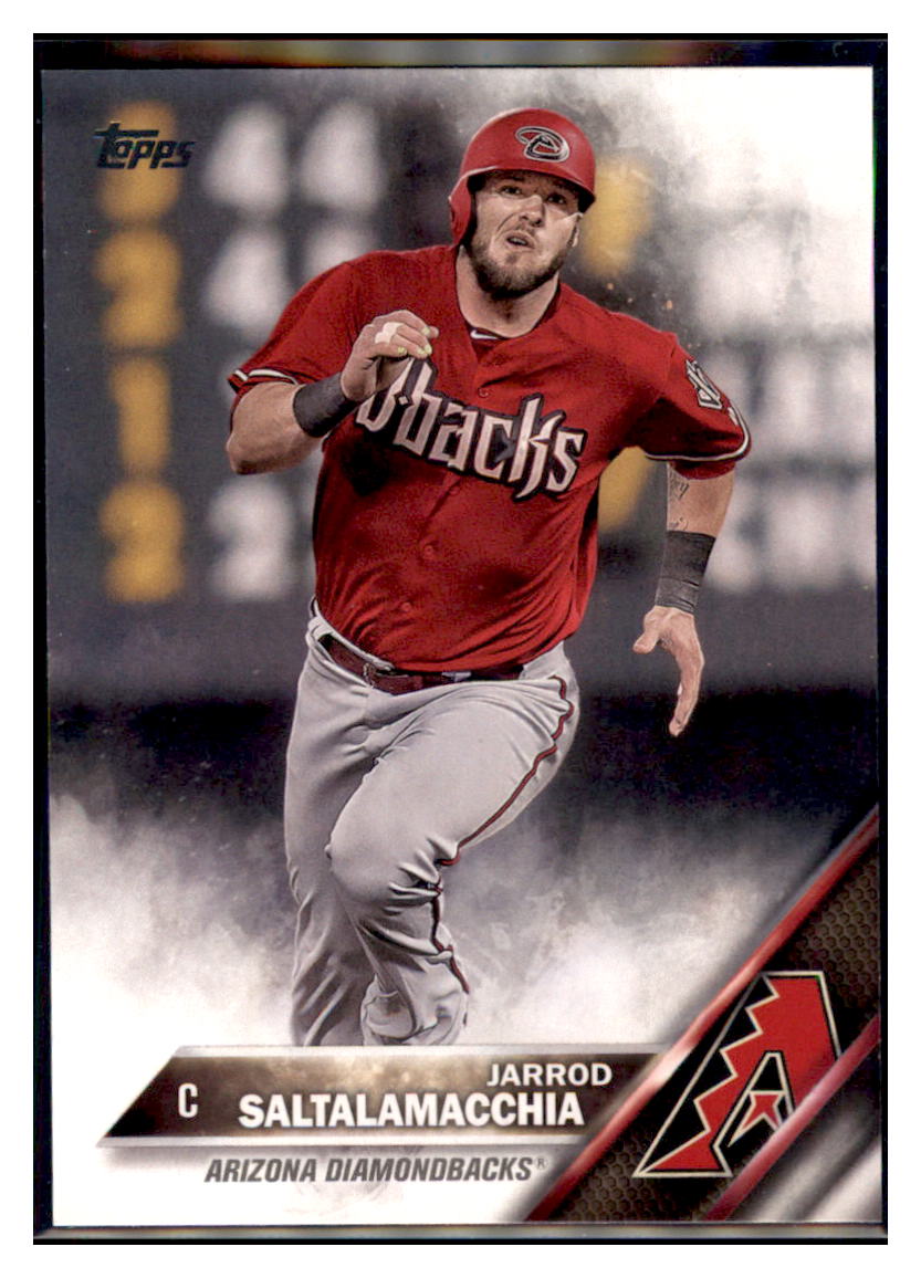 The 2016 Topps series features a clean, modern design with vibrant imagery. This card captures Saltalamacchia in his Diamondbacks uniform, showcasing Topps' commitment to high-quality collectible cards. It's a perfect piece for fans of Saltalamacchia and the Diamondbacks or anyone who appreciates veteran players with a strong career.