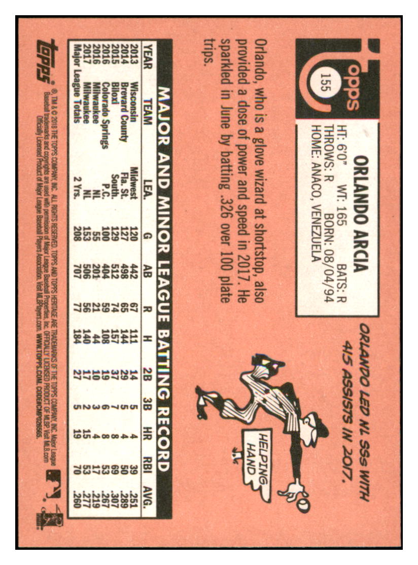 2018 Topps Heritage Orlando Arcia Milwaukee Brewers Baseball Card TMH1A