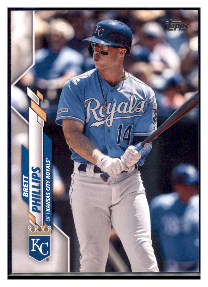 The 2020 Topps series captures Phillips in action with a sleek and vibrant design. The bold colors and sharp details highlight his contributions to the Royals, making this card a visually appealing collectible that stands out in any collection.