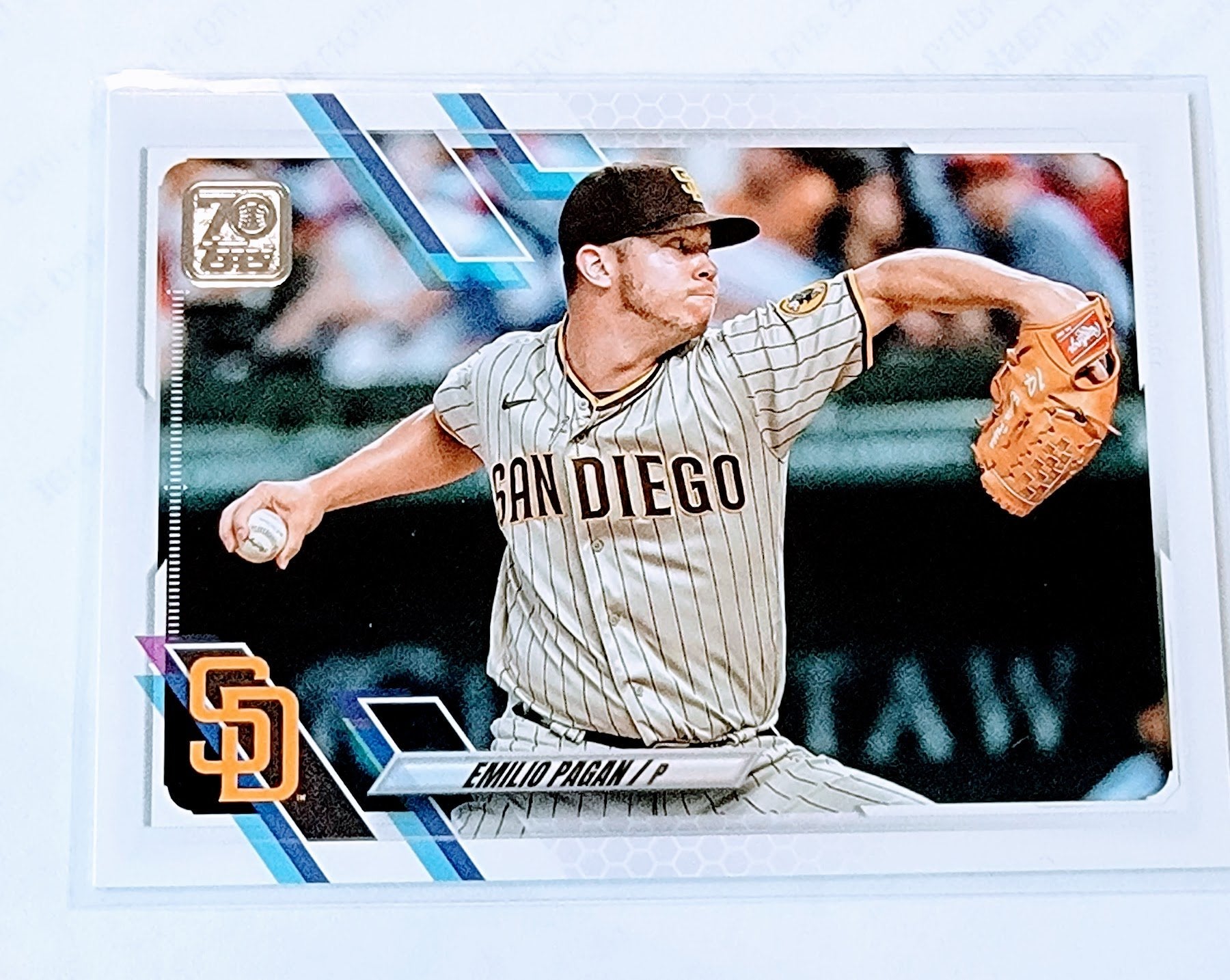 Great looking 2021 Topps Update Emilio Pagan Baseball Trading Card that's a perfect addition to any collection. This, and many others are from a one owner collection where the cards have gone from pack directly to sleeve.