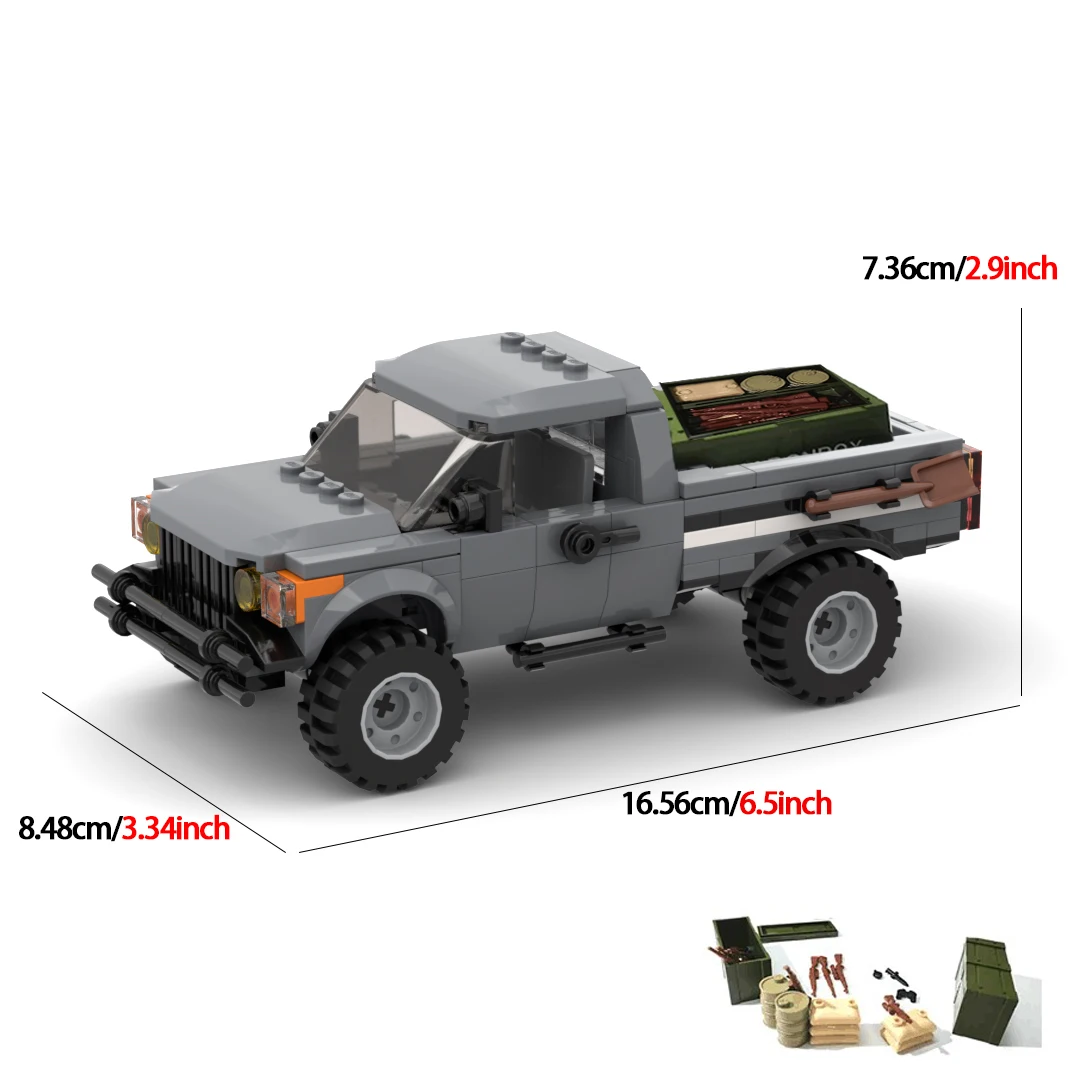 off-road pickup truck building blocks, MOC military truck brick model, utility vehicle construction set, army pickup block kit, realistic truck model for display, compatible brick vehicles, creative military building set, pickup construction toy for adults