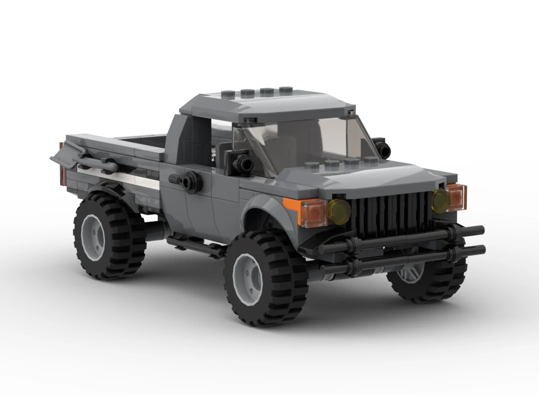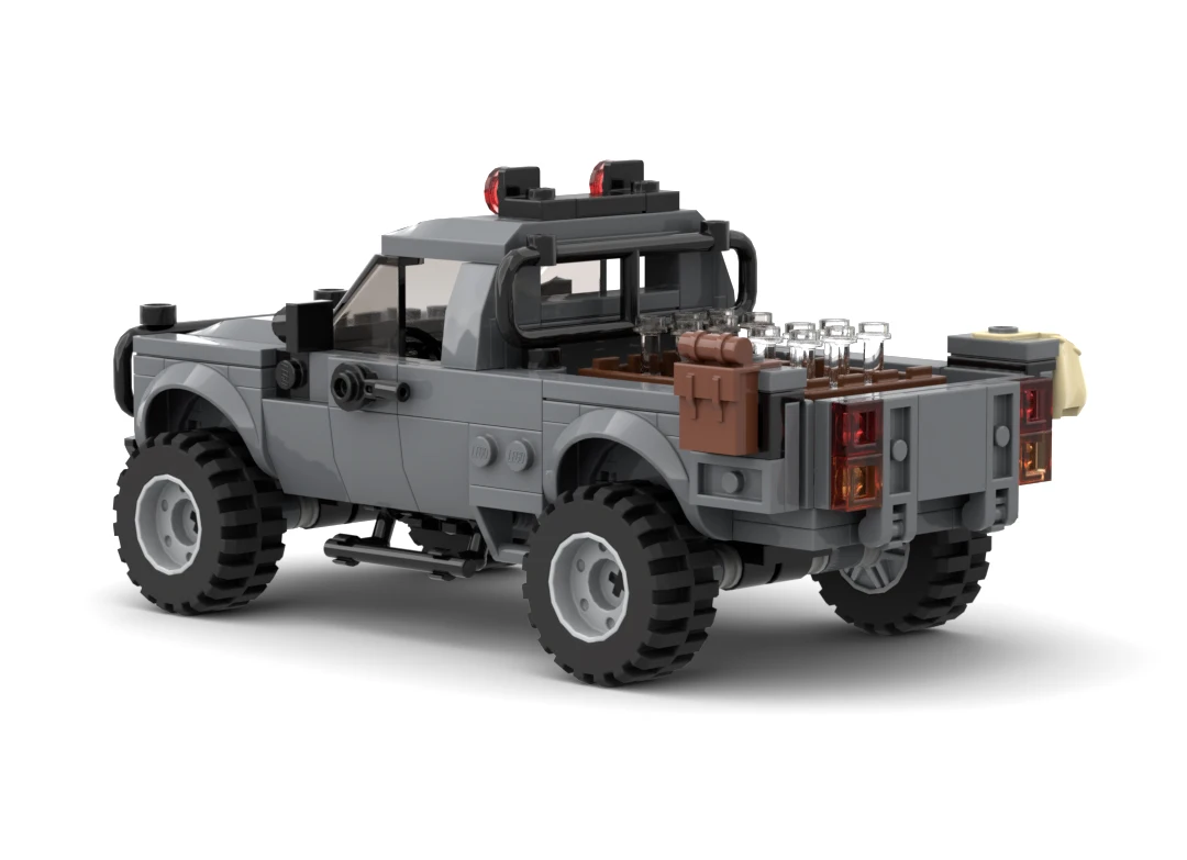 The model features an aggressive front grille, off-road tires, roof-mounted lights, and a rear storage bed with cargo accessories. The design emphasizes precision, strength, and structure while maintaining compatibility with other major building block systems. It’s a favorite among MOC enthusiasts looking for realistic modern vehicle builds.