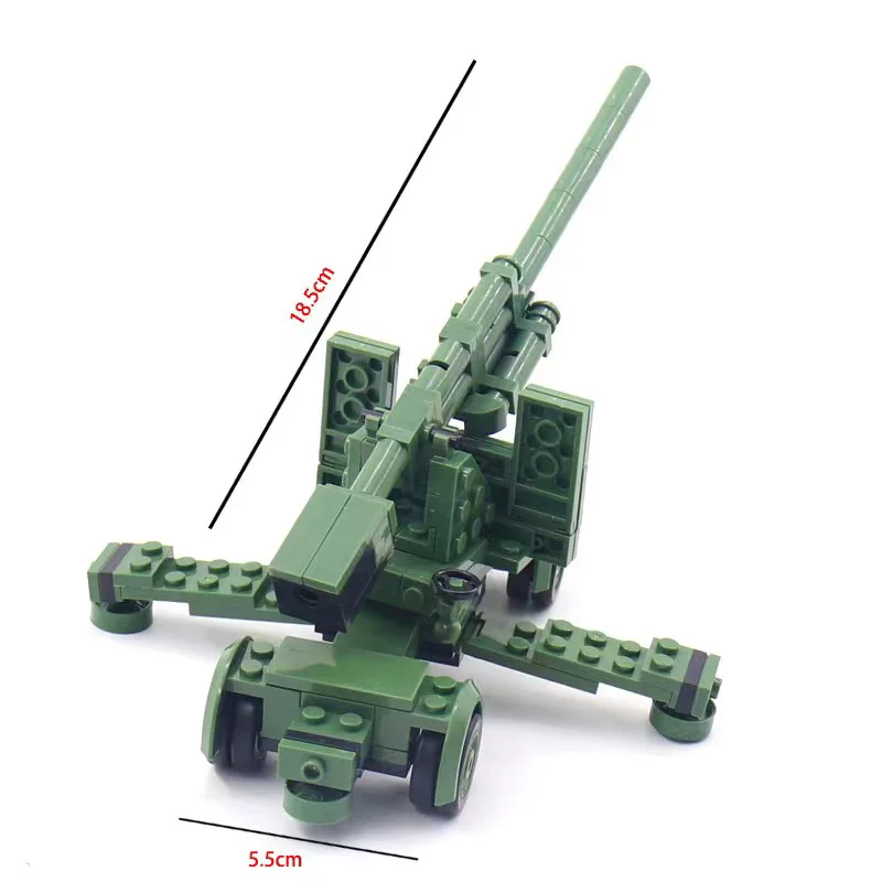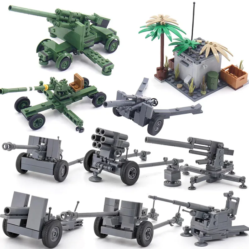 military cannon building blocks, WW2 artillery model, brick compatible guns, anti-aircraft weapon model, field cannon toy set, army building blocks, rocket launcher model, brick army collection, historical war model toys, battle gun building set