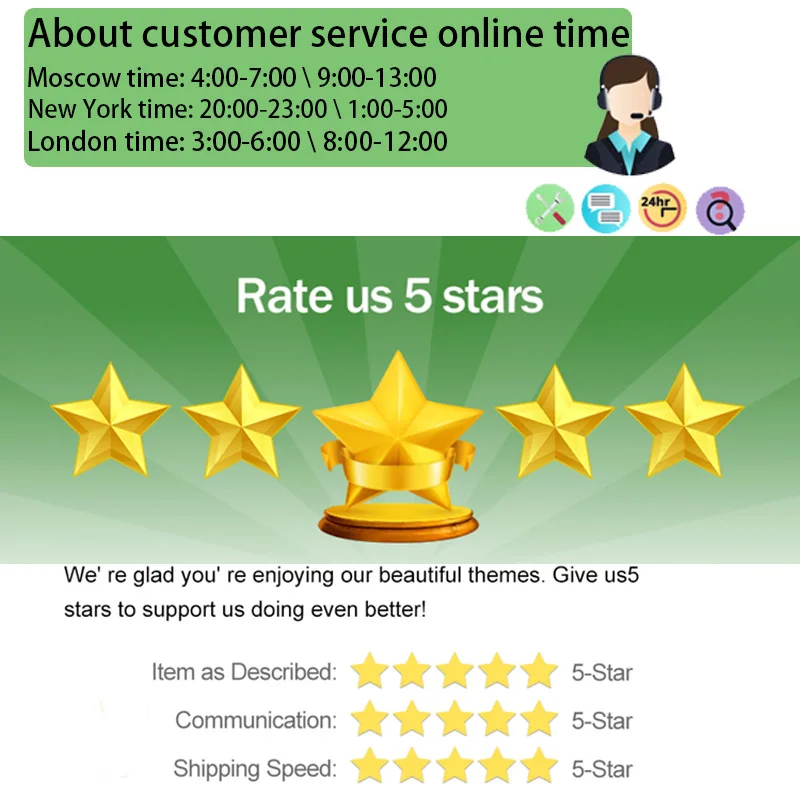Your satisfaction and positive feedback are very important to us. If you are satisfied with our products and services, please leave positive feedback and five stars.